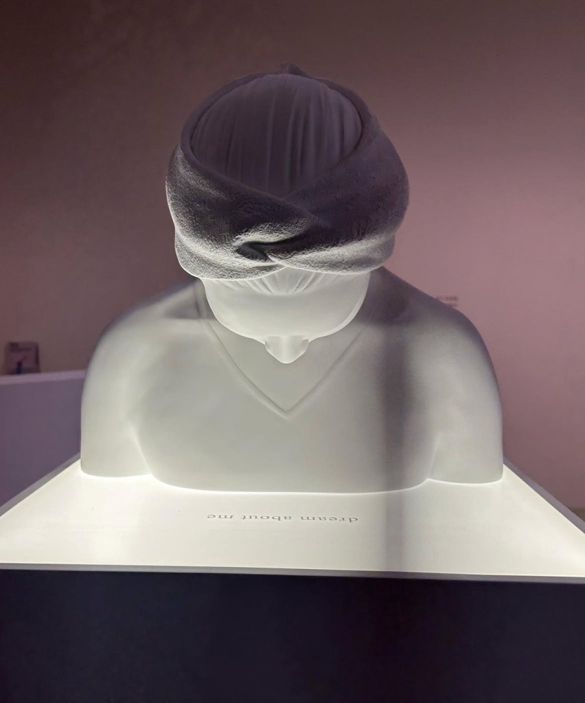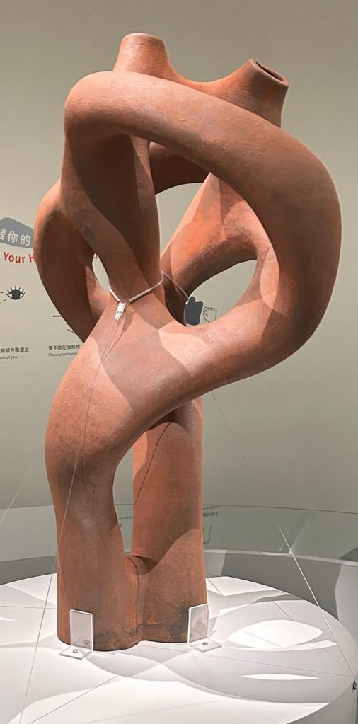 展場動線的安排上,我認為若將蒲添生的作品《運動系列》置於前方,再銜接後段的互動裝置,或許能更直觀地呈現彼此間的關聯。何采柔的《夢見我》十分優雅而柔美,第一時間我想到了黃土水(1895-1930)《甘露水》(Daughter of Nectar, 1919-1921, 大理石雕塑,175x80x40cm,國立臺灣美術館)。然而,作品似乎缺乏相對應的互動設計,略顯可惜。