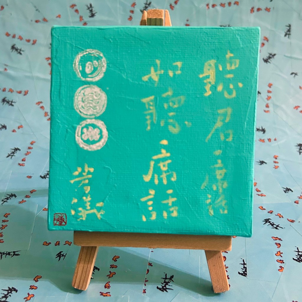 本次壓克力書法創作系列共計九件作品,圍繞四個主題展開:「探問思索書法的本質與邊界」、「表達個人核心理念」、「自省與情感的書寫」,以及「網路語言現象的觀察」。這些主軸彼此交織,構成我對書法在當代語境中多重可能性的探索與回應。