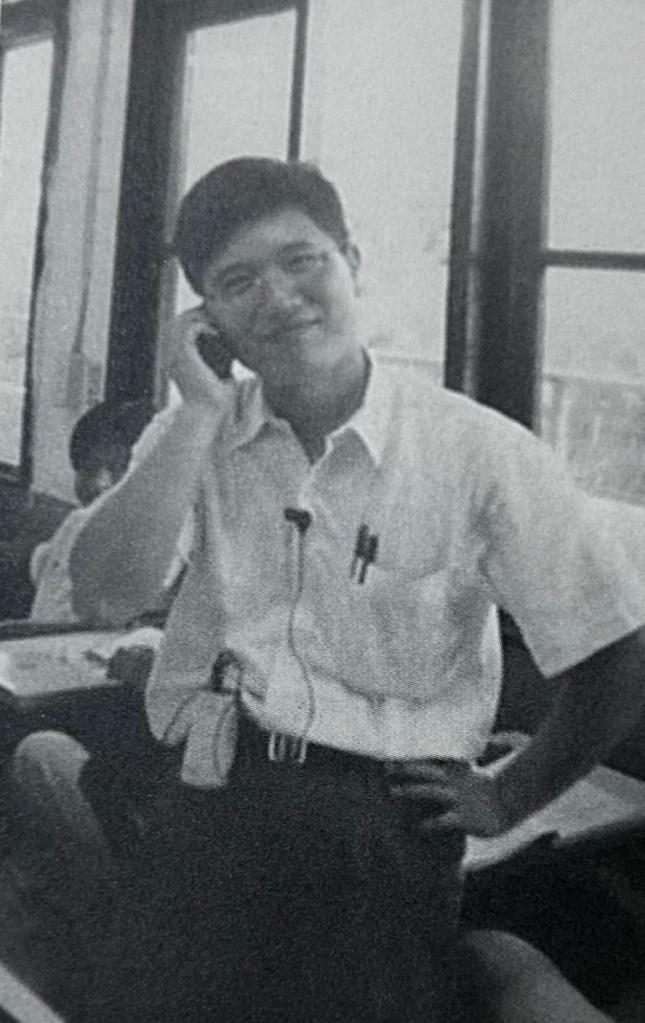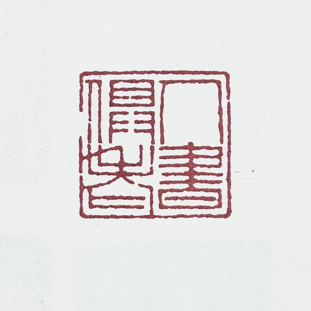 陳國昭(1987-1990),畢業於清大材料研究所,曾入選第五十二屆全省美展篆刻。〈人書俱老〉左上角一筆破畫龍點睛,印面設計疏密有致,線條帶有抖動感,富有韻律與生命力。