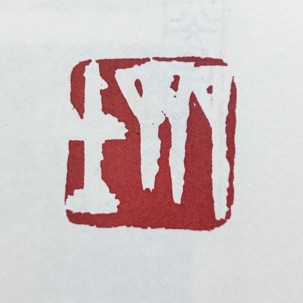 〈齊士〉這件作品簡約、粗獷,紅白對比強烈,極具視覺張力,非常抓眼球。作者徐照盛,1957年,生於臺東,曾任職於高雄醫學大學醫檢系。篆刻從陳伯濤啟蒙,繼從黃嘗銘學習。
